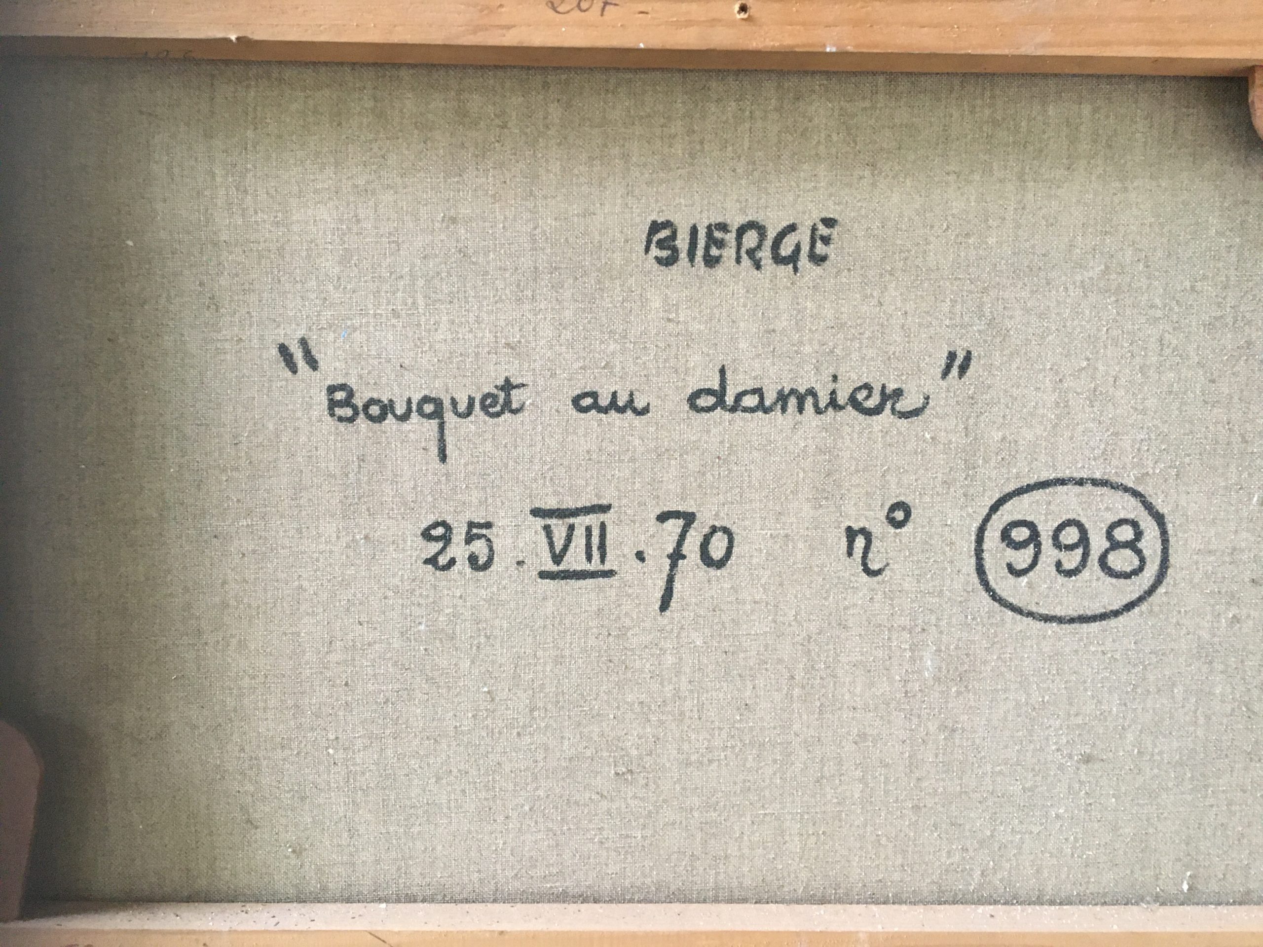A vendre: Roland Bierge – Huile sur Toile – Bouquet au damier – 1970.